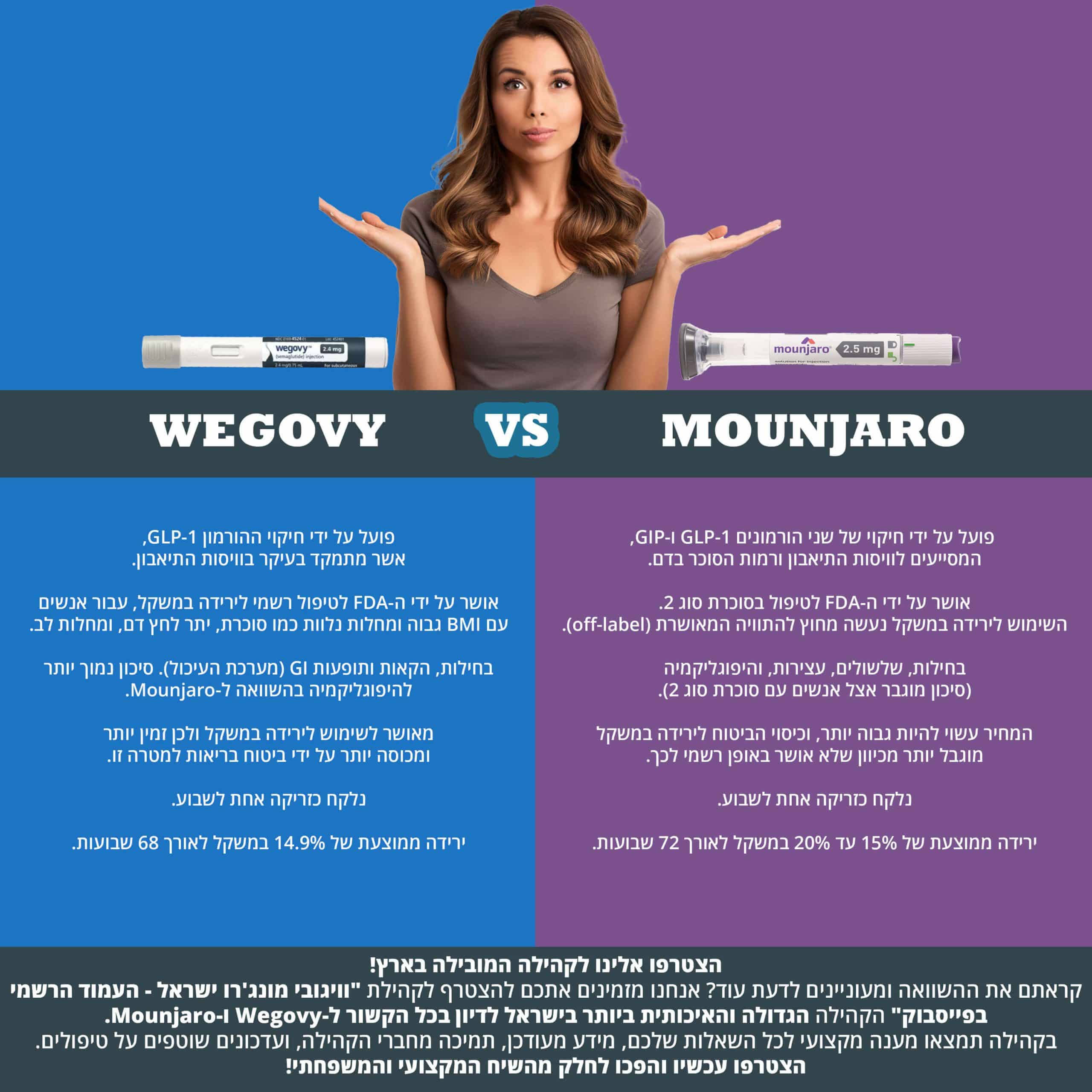 | התבחין | מונג'רו Mounjaro | וויגובי Wegovy |